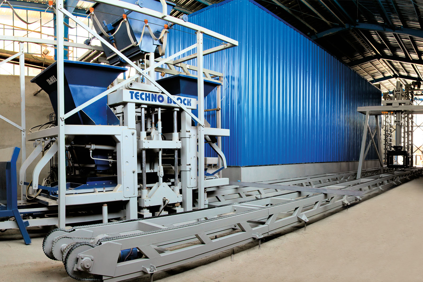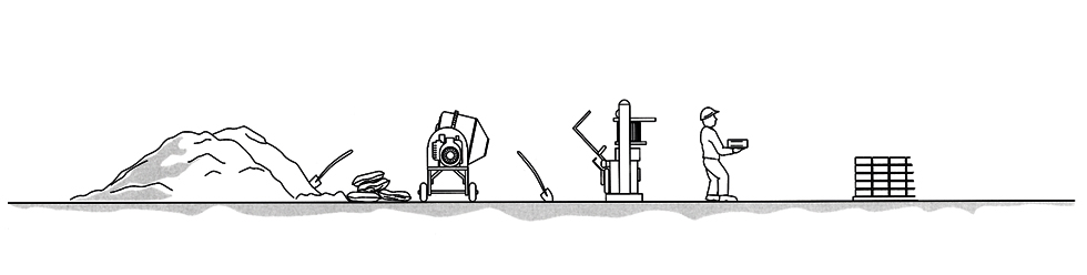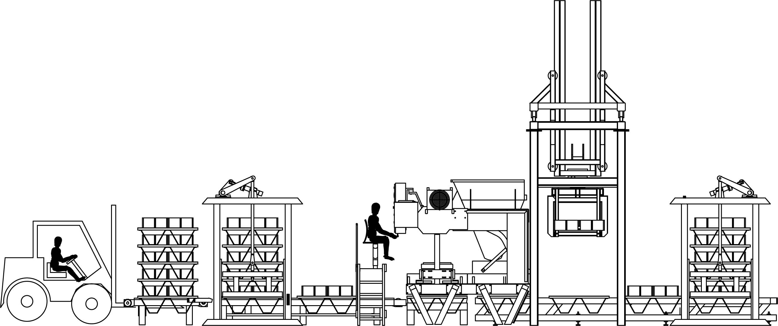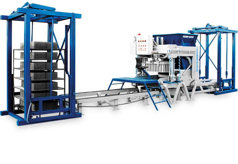 Production of various types of concrete products (blocks, curbs, pavements …) single & double layer on wood pallets