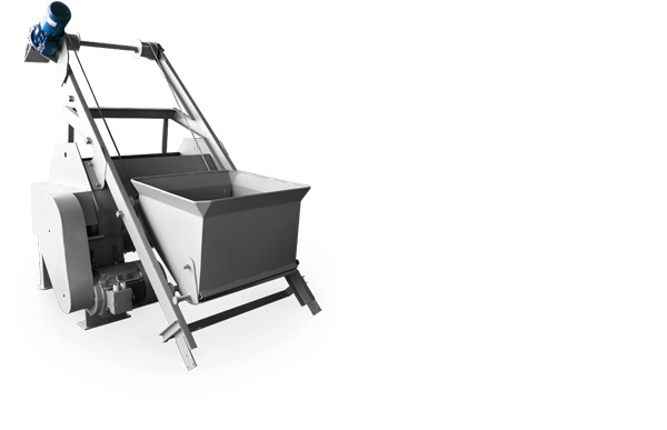 Equipped with a tank 500 L tank that takes the first material to the mixer bucket with a separate gearbox