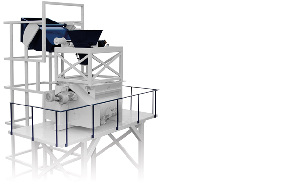Mixture lift with capacity of 1800 kg equipped with a 10 kW motor gearbox, which carries the dry mixture onto the pot.