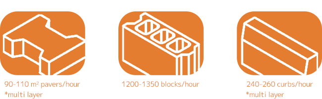 Production Rate: 240-260 curbs/h , 1200-1350 blocks/h ,90-110 sqm of pavement/h