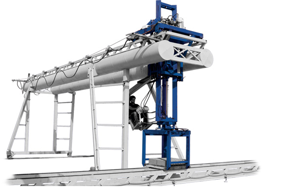 A rotating robot with 11m widthwise movement & 1.50 meters course driven by an hydraulic cylinder & a 500cc hydraulic pump which picks pallets from the chain belt & stacks them in four levels.